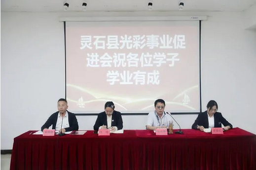 (图为灵石光彩事业促进会会长、集团党委书记王殿辉送来祝福)