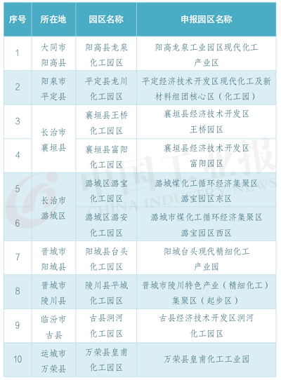 8月31日,山西省工信厅网站公示了山西省化工园区拟认定名单(第一批),确定10家拟认定化工园区。