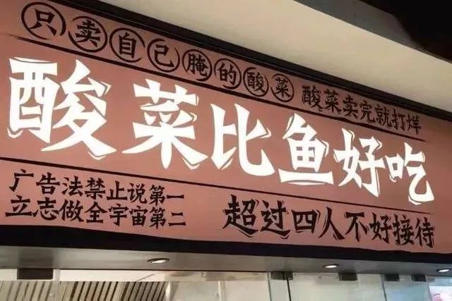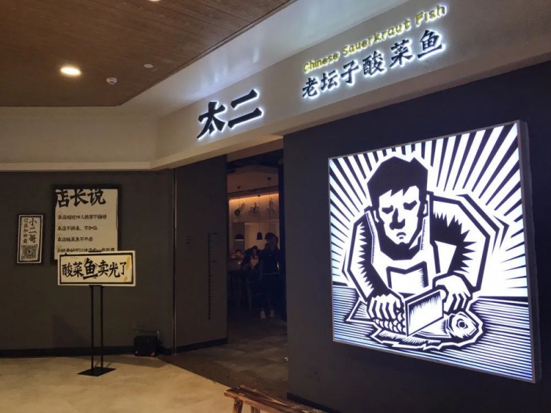 太二酸菜鱼,虽然是卖鱼,却在酸菜上下足了功夫,宣传语是酸菜比鱼好吃,。以一个看似犯二的口号,树立起了独一无二的产品壁垒。