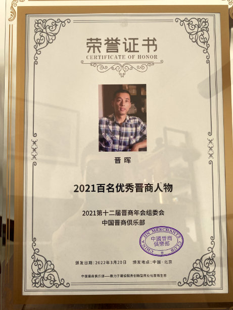 2022年9月7日,受2021第十二届晋商年会组委会、中国晋商俱乐部秘书处委托,淄博市晋商商会向2021百名优秀晋商人物、淄博晋驰国际货运代理有限责任公司董事长晋晖颁发了荣誉奖牌。