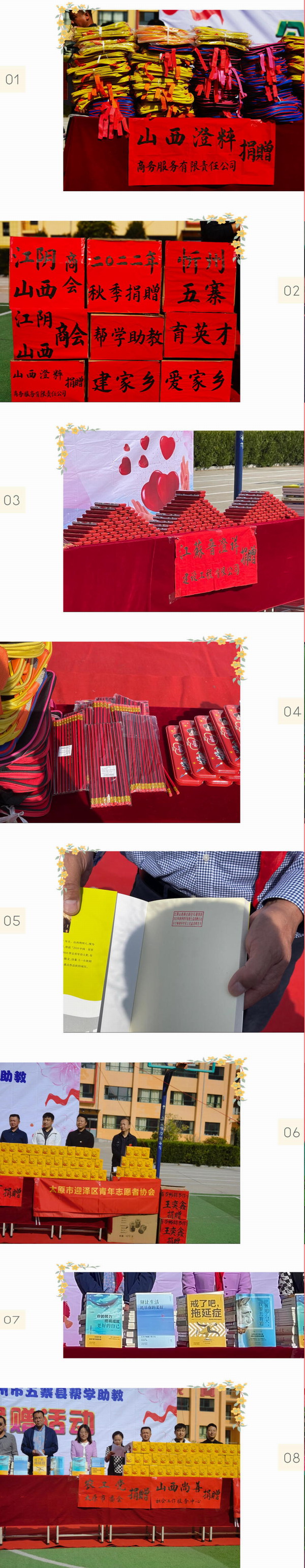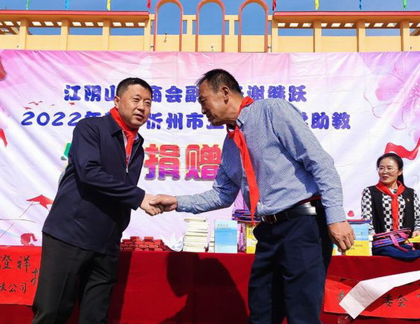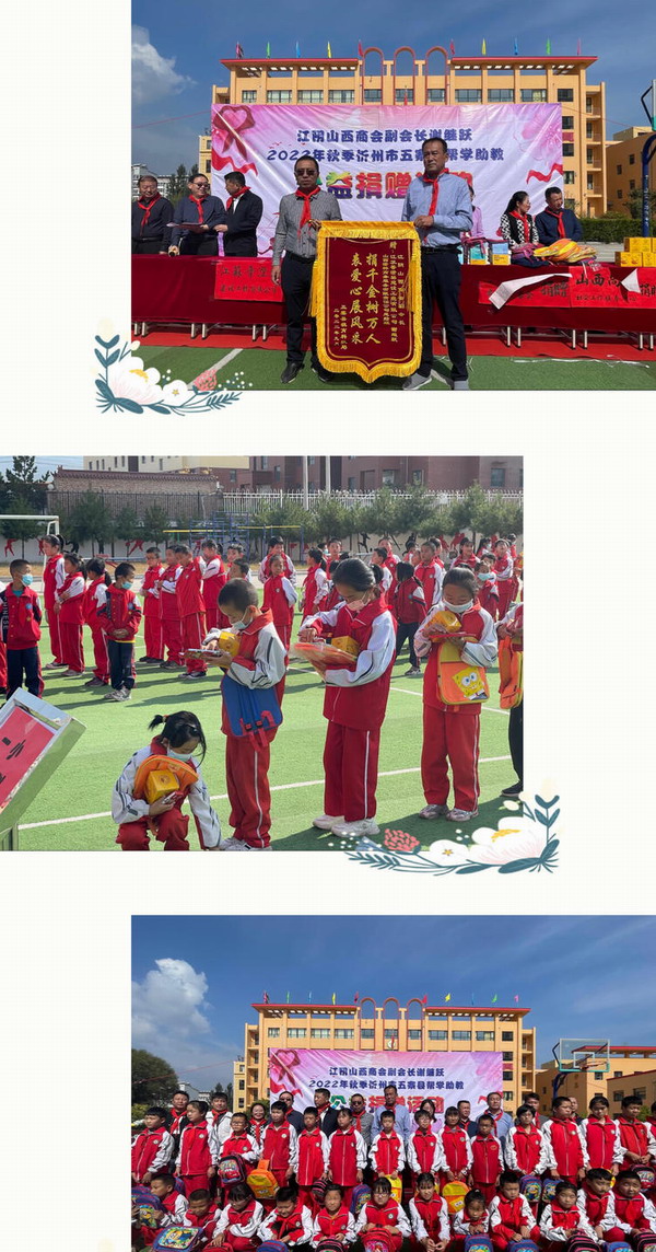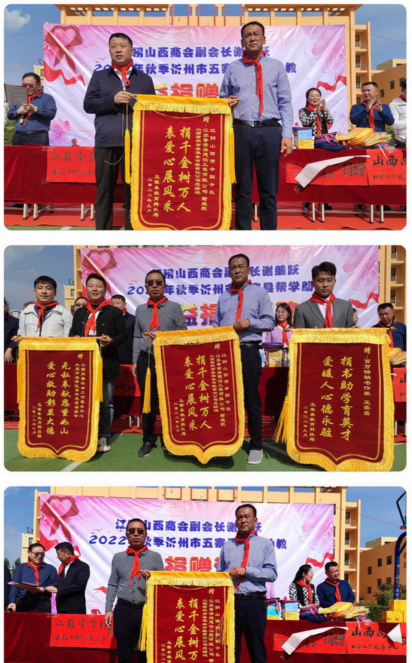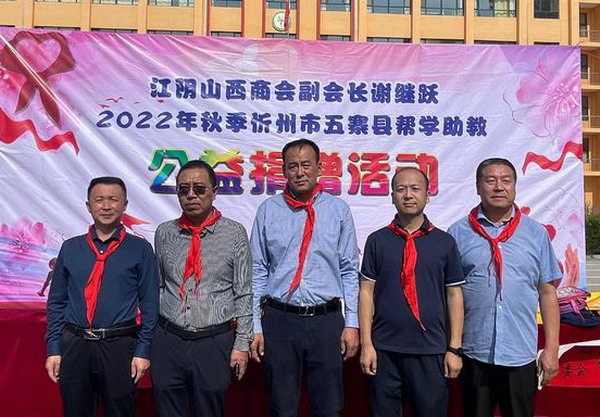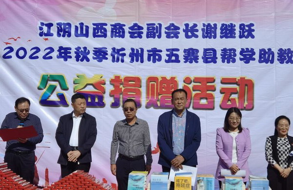 2022年9月16日上午,在省政协副主席李青山的指示下和五寨县教科局办公室张雨主任的积极配合协调沟通下,举办了江阴山西商会副会长谢继跃2022年秋季忻州市五寨县帮学助教公益捐赠活动。(江阴市山西商会为中国晋商俱乐部联合发起机构,谢继跃为2016百名优秀晋商人物)