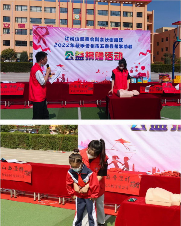 江阴山西商会会长李振中,江阴山西商会常务副会长王瑜,江阴山西商会副会长、江苏晋澄祥建筑工程有限公司总经理、山西澄粹商务服务有限责任公司总经理谢继跃,农工党太原市委会主委赵春明,农工党太原市委会秘书长张永明,江阴山西商会理事陈素勤、张建华,山西尚善社会工作服务中心理事长赵伟,太原市迎泽区青年志愿者协会会长赵高,百万畅销书作家王奕鑫,急救技能示教老师杨菲、王磊等一行人从各地赶来五寨县举办本次活动。