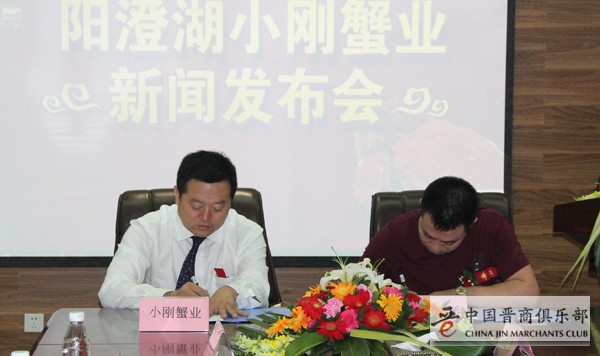小刚蟹业与山西美食团签订合作协议。