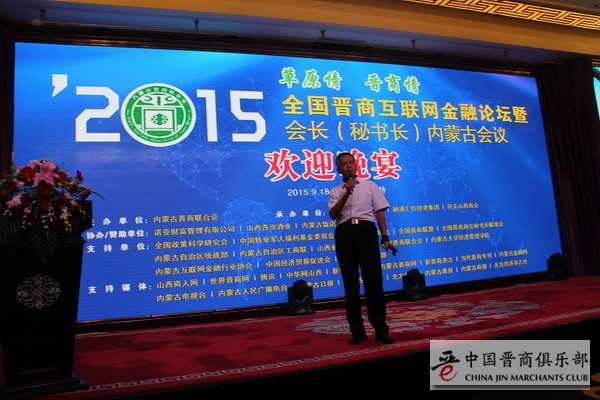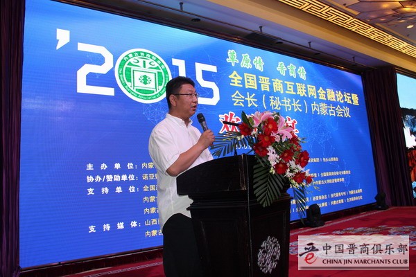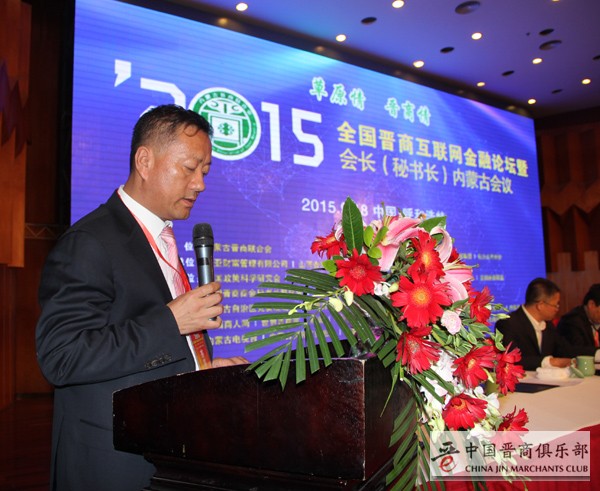 内蒙古晋商联合会会长张志强在讲话中表示“欢迎晋商欢聚草原,共募发展大计。内蒙古是西口文化发源地,是晋商发展的福地、宝地,内蒙古的晋商在金融、文化、政治、互联网方面都取得了卓越的成绩。面对互联网时代的到来,要面向世界搞开放、面向未来搞创新、面向金融搞互联、 面向社会搞品牌。最后,希望内蒙古可以成为晋商云发展的基地。”