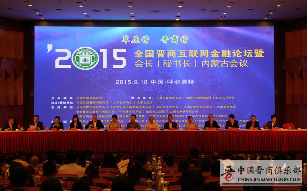 2015全国晋商互联网金融论坛暨会长(秘书长)内蒙古会议于9月19日在呼和浩特顺利召开,会议着重讨论了在我国经济社会常态下,全国晋商怎样通过“互联网+”的模式继续开拓创新,再铸辉煌,并为构建和谐社会、建设美丽中国做出新的更大的贡献。