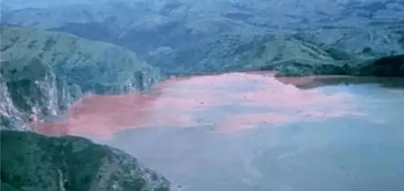 而当天尼奥斯湖湖底的火山喷发搅混了湖水,这又一巨大的搅动力量一边把湖水中的二氧化碳逼出水面,又把湖底的菱铁矿翻到了湖面,于是在形成了惨案的同时,也把湖水变成了诡异的褐红色,看起来更加的骇人听闻。