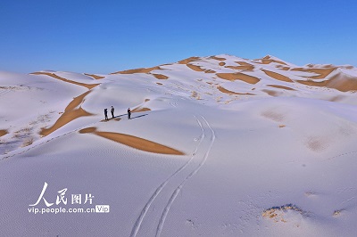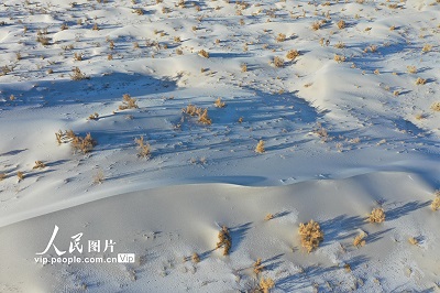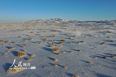 2022年12月16日,一场降雪过后,地处甘肃省酒泉市阿克塞哈萨克族自治县境内的库姆塔格沙漠银装素裹,美不胜收。高宏善摄(人民图片网)