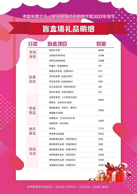 盲盒礼物共计3000份,均由霍州市本地入统商家择优提供;其中2410份实物礼品由:日化百货、休闲零食、家居家电等产品构成;590份代金券为服饰鞋帽、零售百货、家居家电、餐饮住宿类商家提供服务。