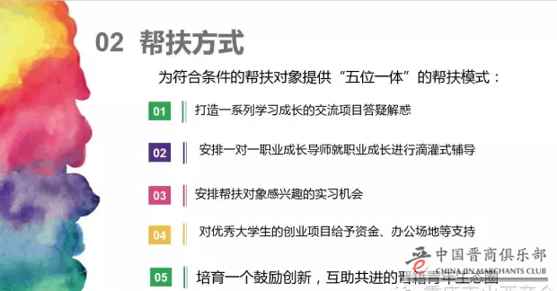 同时,商会常务副会长屈朝辉先生对帮扶计划做了详细的说明。商会将提供“五位一体”的帮扶模式,解答他们在学习成长中遇到的困惑,解决他们在职业成长方面遇到的困难,营造关心支持大学生创新创业和职业成长的氛围。让真正有能力的山西籍青年早日成为新晋商代表及行业精英。