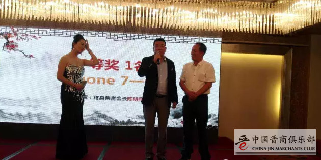 晚上,我们的晚会在老乡们的掌声中如期而至,大家一边吃着可口的菜肴,一边欣赏着舞蹈,气氛和谐而美好。最激动人心的时刻,应当属抽奖环节。商会终身名誉会长陈明亮先生邀请了现场最年长的一位老人和他一起抽出一等奖,奖品是一台iphone7。而最终一等奖的获得者竟是老人的老伴,大家纷纷送上了掌声。正如他们的幸运号码“9”一样,陈明亮先生也在舞台上表示,祝福我们的幸福长长久久,我们的山西商会长长久久。