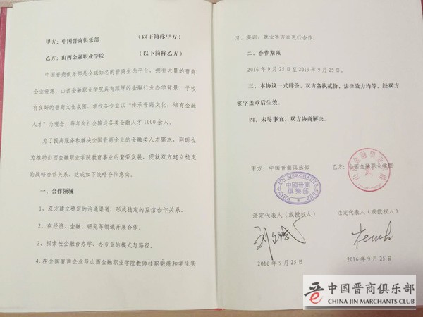 在此次新闻发布会上,山西金融职业学院(简称山西金院)与晋商年会主办单位中国晋商俱乐部签署战略合作协议,围绕金融产研学结合,共同促进晋商与山西金院的校企联合办学事业,促进晋商商帮共赢辉煌。