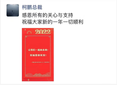 据“凤凰WEEKLY地产”,2022年新年,柯鹏在微信朋友圈发布了一条新年海报,并称“感恩所有的关心与支持”。到2022年11月,知名财经媒体人曹山石在个人社交媒体上称“先柯鹏,后老板”,柯鹏接着在朋友圈给好友点赞。没想到,2023年伊始,“狼”真的来了。