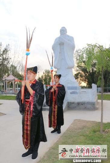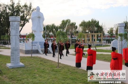 古韵悠扬,雅乐萦绕。28日,山西一高校孔子文化园内,学子们身着传统服饰表演了传统祭祀礼仪中的“八佾舞”,并齐声诵读经典,以此纪念孔子诞辰2566周年。
