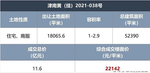 其中,山西鹏飞集团以23.8亿元拿下南开战备楼地块,两宗地的土地性质均为住宅和商服,成交楼面价约在22140元/㎡,下调15%+。