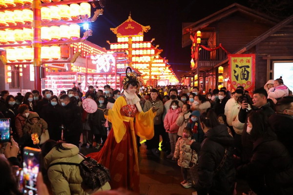 置身茫茫人群,穿梭在国潮长街,热闹接踵而至,民间传统的民俗杂耍表演、特技高跷、天塔舞狮、抛绣球招亲……还有惊险刺激的环球飞车,柔美悠扬的彩绸飞舞,不间断的精彩表演,让游客沉浸式体验全新国潮文化盛宴。