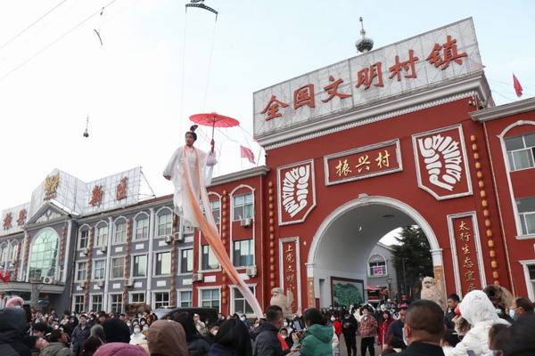 赏民俗非遗表演,看古街歌舞升平,徜徉舌尖上美食……1月24日,随着一场精彩的开街仪式,振兴小镇开门迎客了!三三两两的游客,或聚,围观特色杂技表演;或散,争先在旁打卡拍照。一家人其乐融融地感受着这不一样的中国年味。