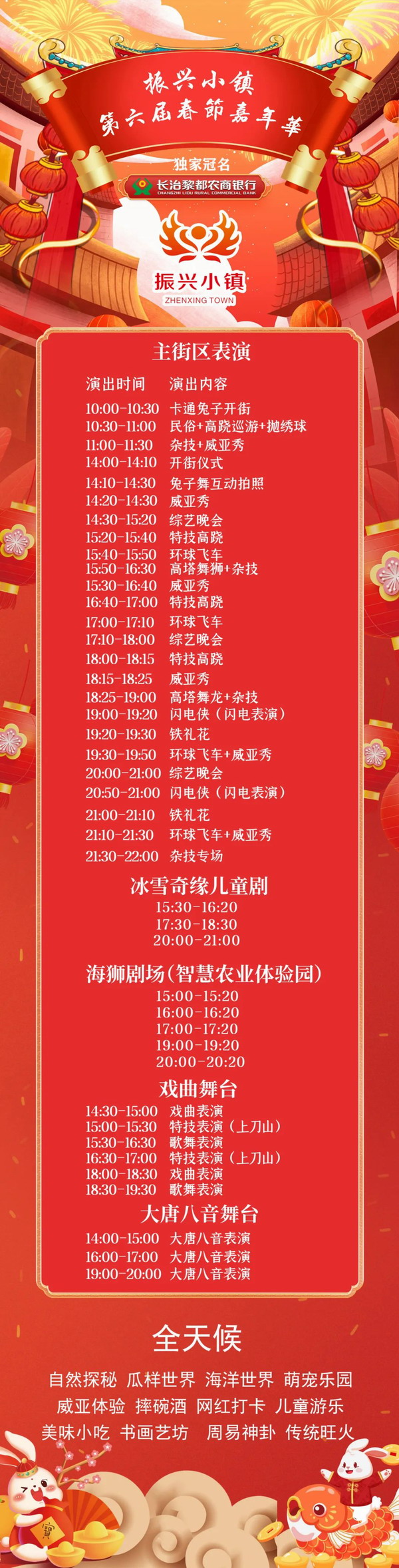 振兴小镇位于长治市上党区振兴村境内,2018年12月29日成功获评为国家4A级景区,是一处融休闲娱乐、民俗体验、度假养生、农艺体验为一体的乡村旅游度假胜地。春节期间(正月初一至正月十六),振兴小镇举办第六届春节嘉年华,推出45项文化活动带游客一起感受传统特色中国年。