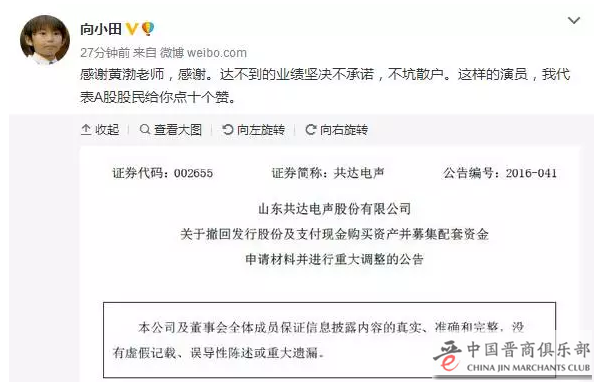 遗憾的是,明星手中的公司上市失败的有,想要通过上市公司重组变现失败的也不少,而这一次,轮到黄渤了。