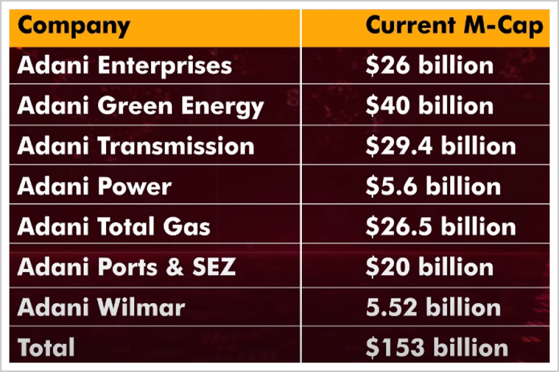 在过去三年里,阿达尼的个人财富增加超过1000亿美元,这主要是通过Adani Group旗下七家上市公司的股价上涨,它们三年内平均涨幅达到819%。