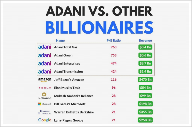 经过连续大幅度上涨,阿达尼集团的估值已高到离谱,不但远高于同行,甚至高于亚马逊、特斯拉等科技公司。