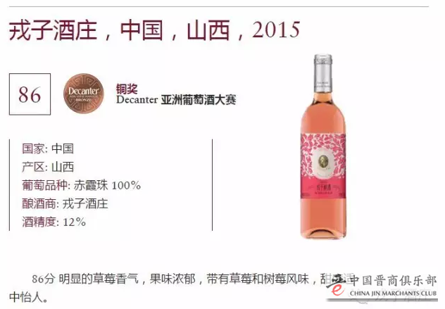 DECANTER酒评:明显的草莓香气,果味浓郁,带有草莓和树莓风味,甜度适中怡人。