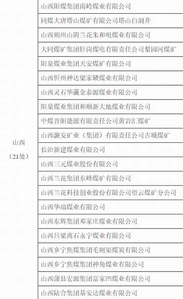 记者从山西省能源局了解到,山西省21家煤矿入列。