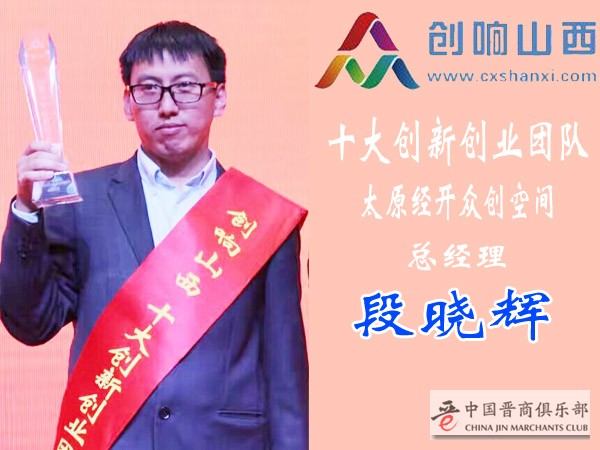 中国晋商俱乐部副理事长、双创与投融资委员会主席段晓辉旗下太原经开众创空间荣获创响山西“十大创新创业团队”,段晓辉先生出席现场并接受奖杯。