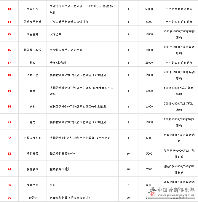 晚宴总冠名:156万 企业自己做宣传最少260万。【省100万】