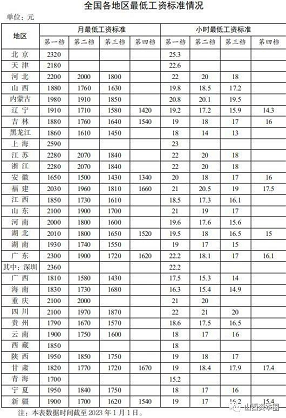以下为人社部公布的全国各地区最低工资标准情况(截至2023年1月1日):