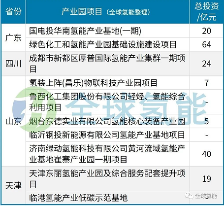 重点氢能产业园项目,投资金额数据来源包含政府公布与媒体公布两个渠道,统计存在疏漏,仅供参考