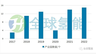历年来氢能产业园数量,图源全球氢能,统计可能存在疏漏,仅供参考
